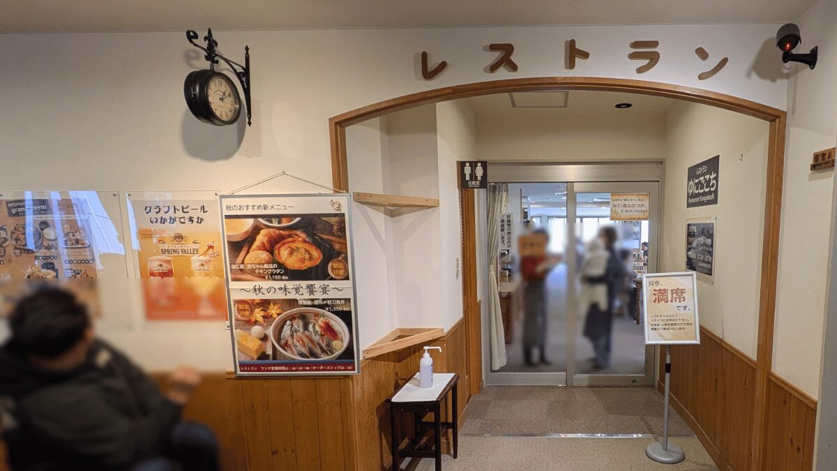 入口前では焼き鳥の良い香りが…ですが我が家はいつもレストラン「ゆにごこち」へ!