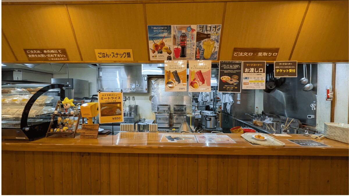 館内奥には、軽食コーナーも。カツカレー(約900円)やソフトクリーム、あげいもも人気です