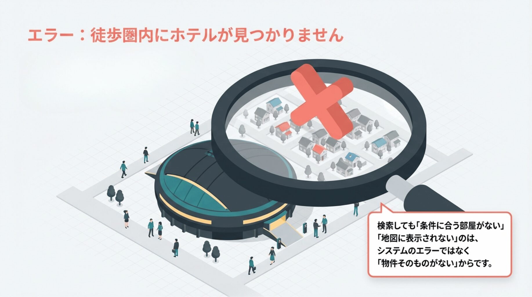 徒歩圏で選べるホテルがほとんどないと気づいたとき、