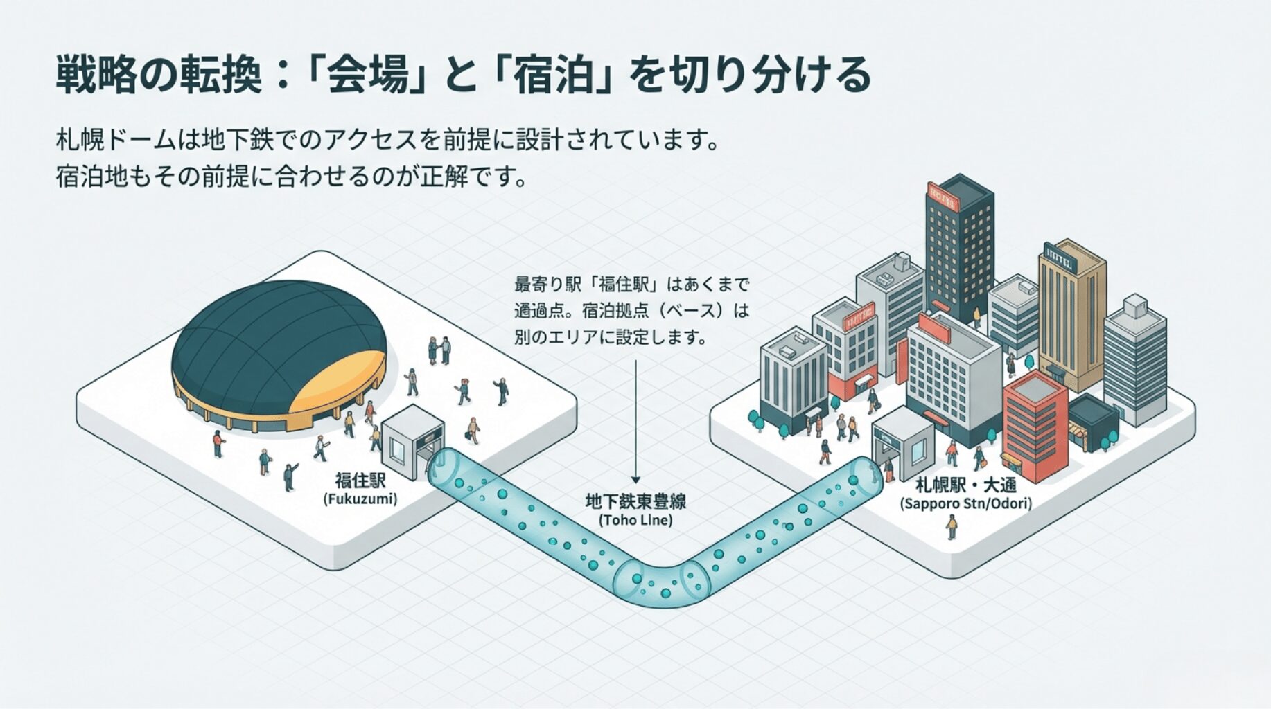 結論:札幌ドームは「徒歩圏で泊まる」という発想が成立しない会場