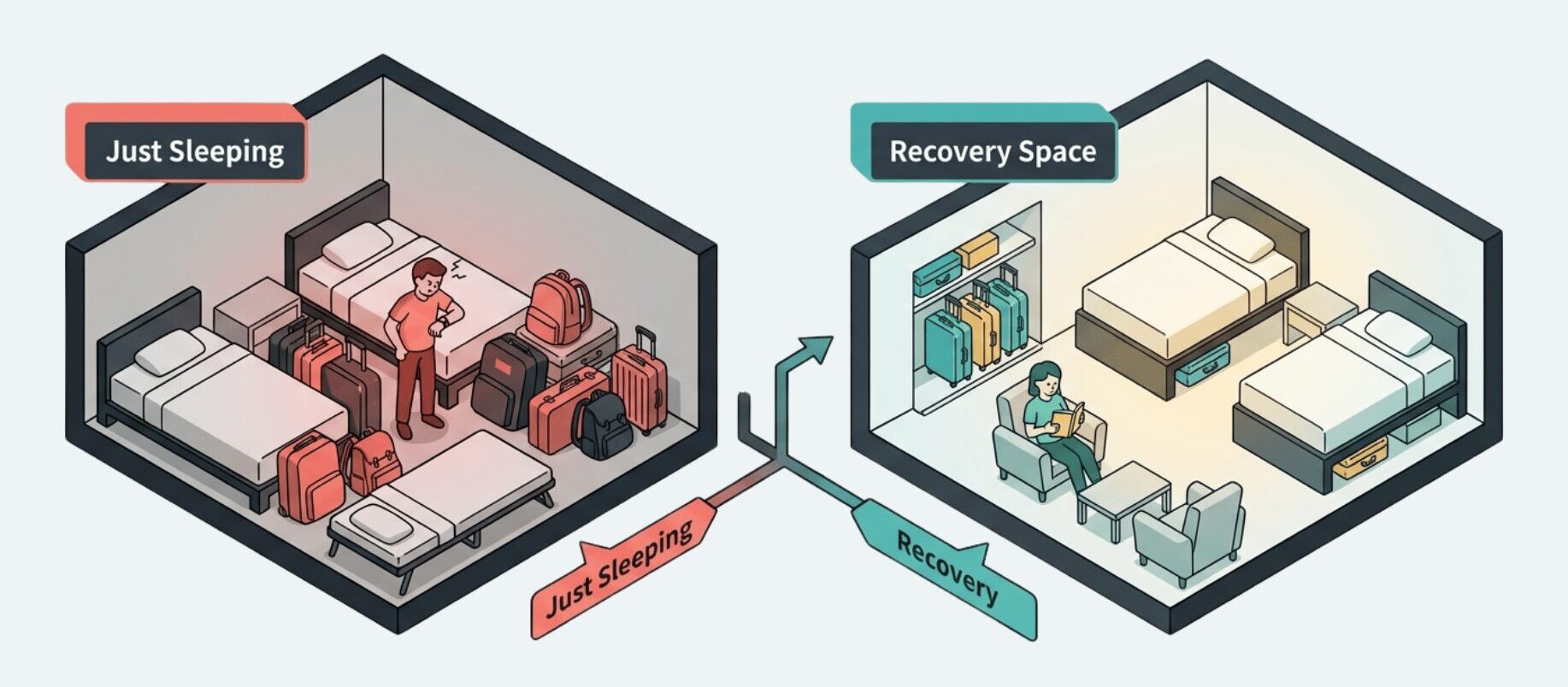 人数に合った部屋で、翌日まで含めて楽に動けるかが重要です。