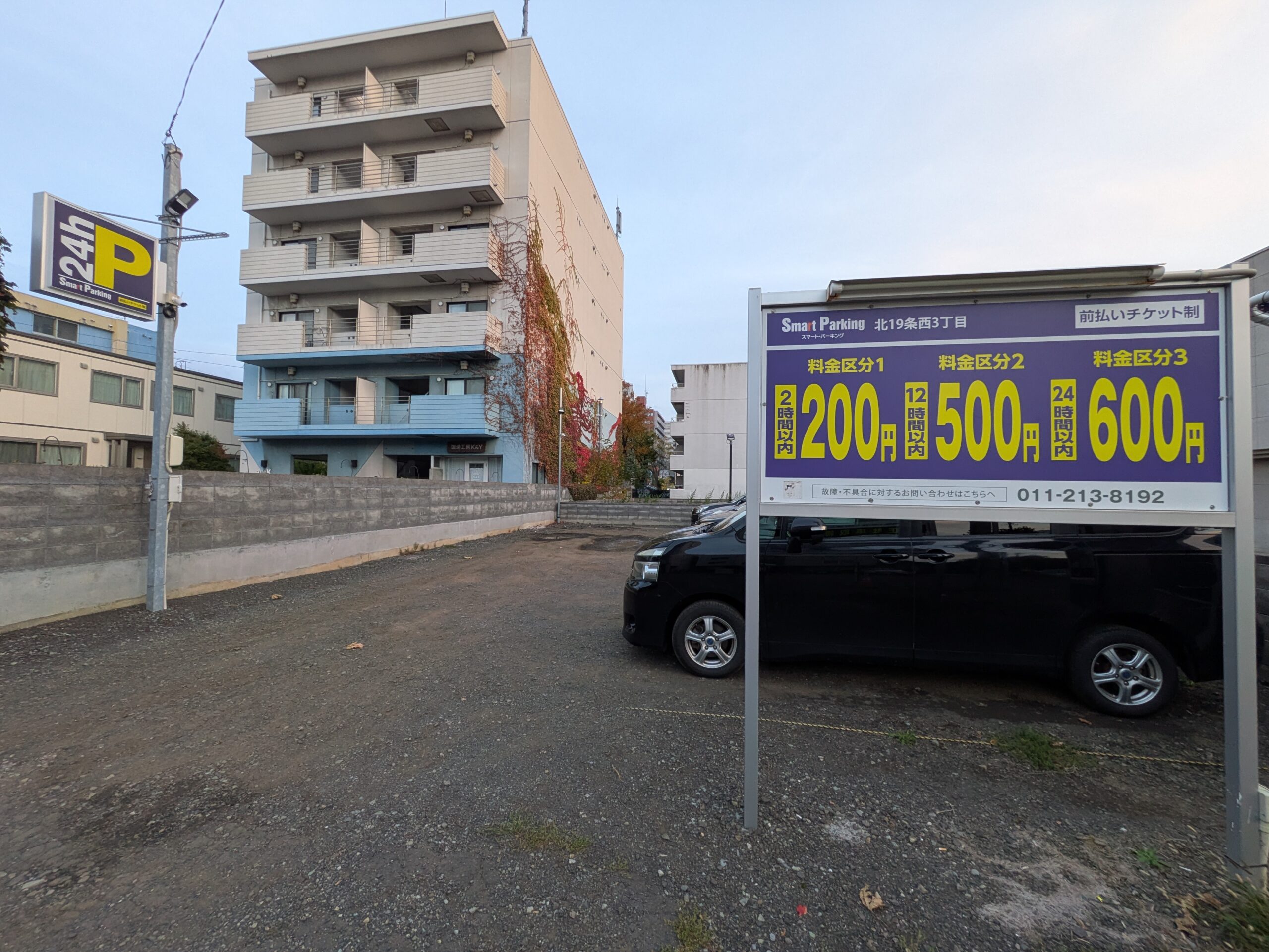 専用駐車場はありませんが、近くに格安の「Smart Parking 北19条西3丁目」があります。