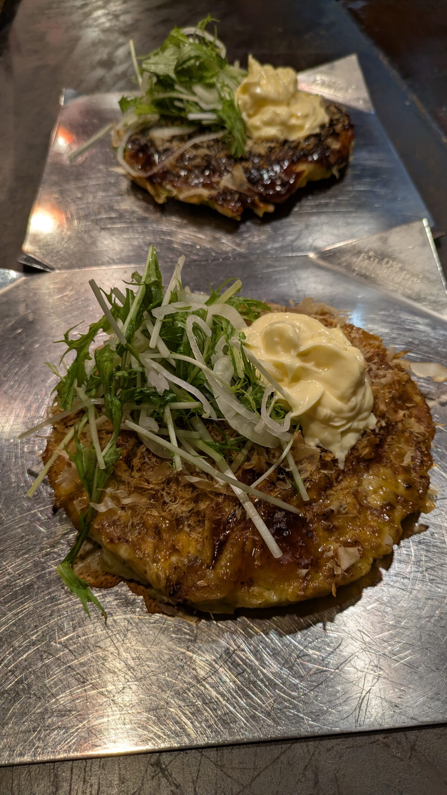 手前がチーズ焼き。お好み焼きのカリカリのところが濃厚なチーズ味!