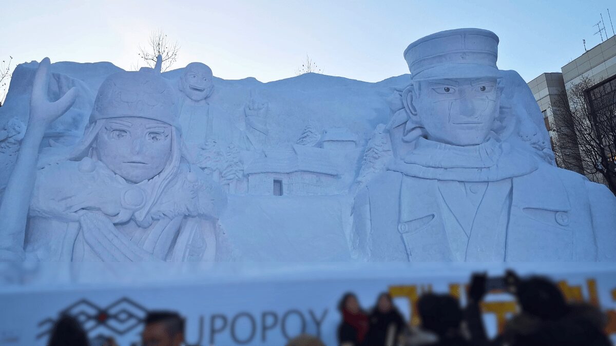 「ゴールデンカムイ(2024)」の雪像の前は常に人だかりが絶えませんでした。写真自体は撮れますが、時間帯や雪像の人気によっては、落ち着いて構える余裕があまりない場面もあります。